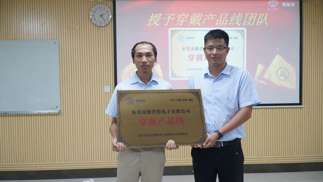 两位领导的讲话为2024上半年的总结汇报画上了句号。在下半年的战斗中,为增强团队凝聚力与集体荣誉感,公司领导班子将特别定制的专属牌匾交到各产品线负责人手上。
